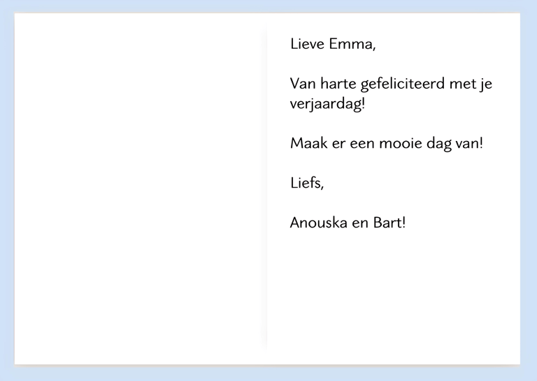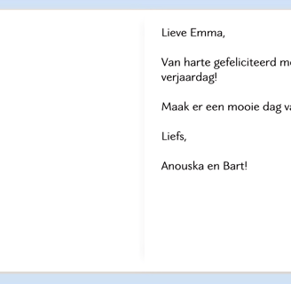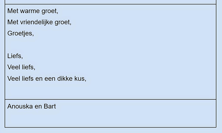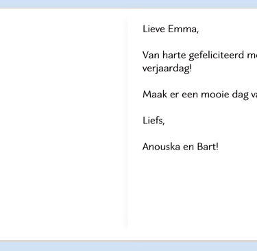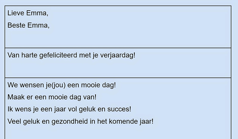Schrijf een kaartje in het Nederlands. Kies uit elke kolom slechts één regel en maak je eigen kaartje.