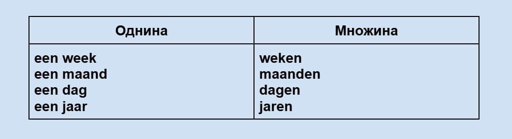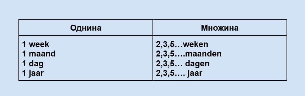 Вправа 3. Вживання числа з week/maand/jaar/dag