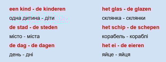 У нідерландській мові множина іменників утворюється за допомогою додавання певних закінчень до однини. Існують основні правила для утворення множини:
