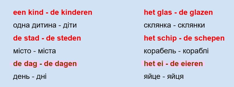 een been (ніога) → twee benen (ноги)