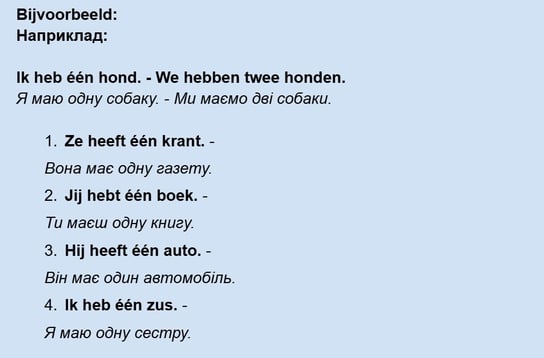 Завдання 1. Перекладіть наступні слова нідерландською мовою протягом 5 хвилин. Зверніть увагу на використання правильного артикля (de/het).